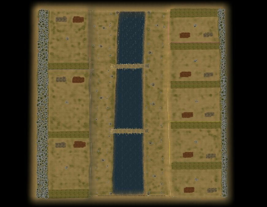Огромная карта на 12 игроков, которую посередине разделяет река.